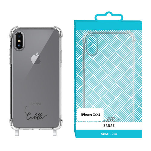 Coque imprimée logo Cordella avec anneaux intégrés pour iPhone X / XS, Transparent