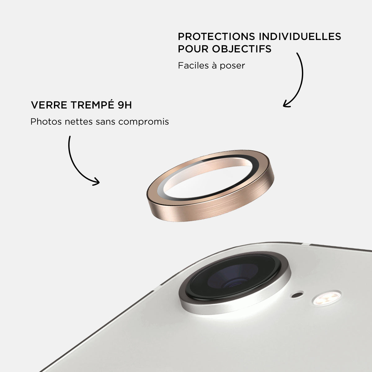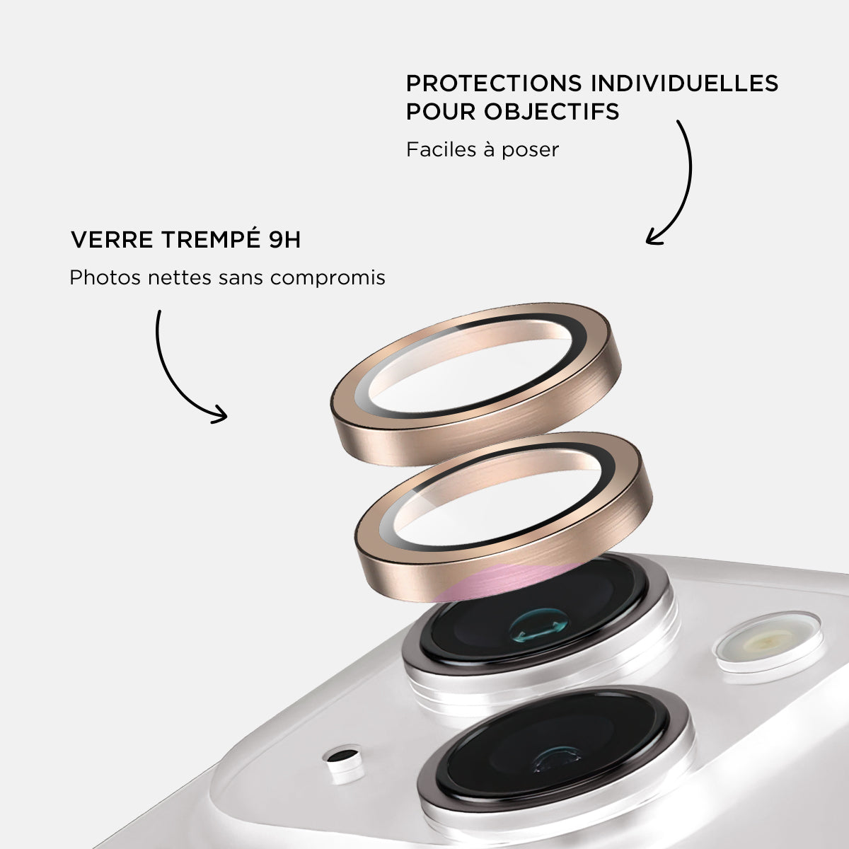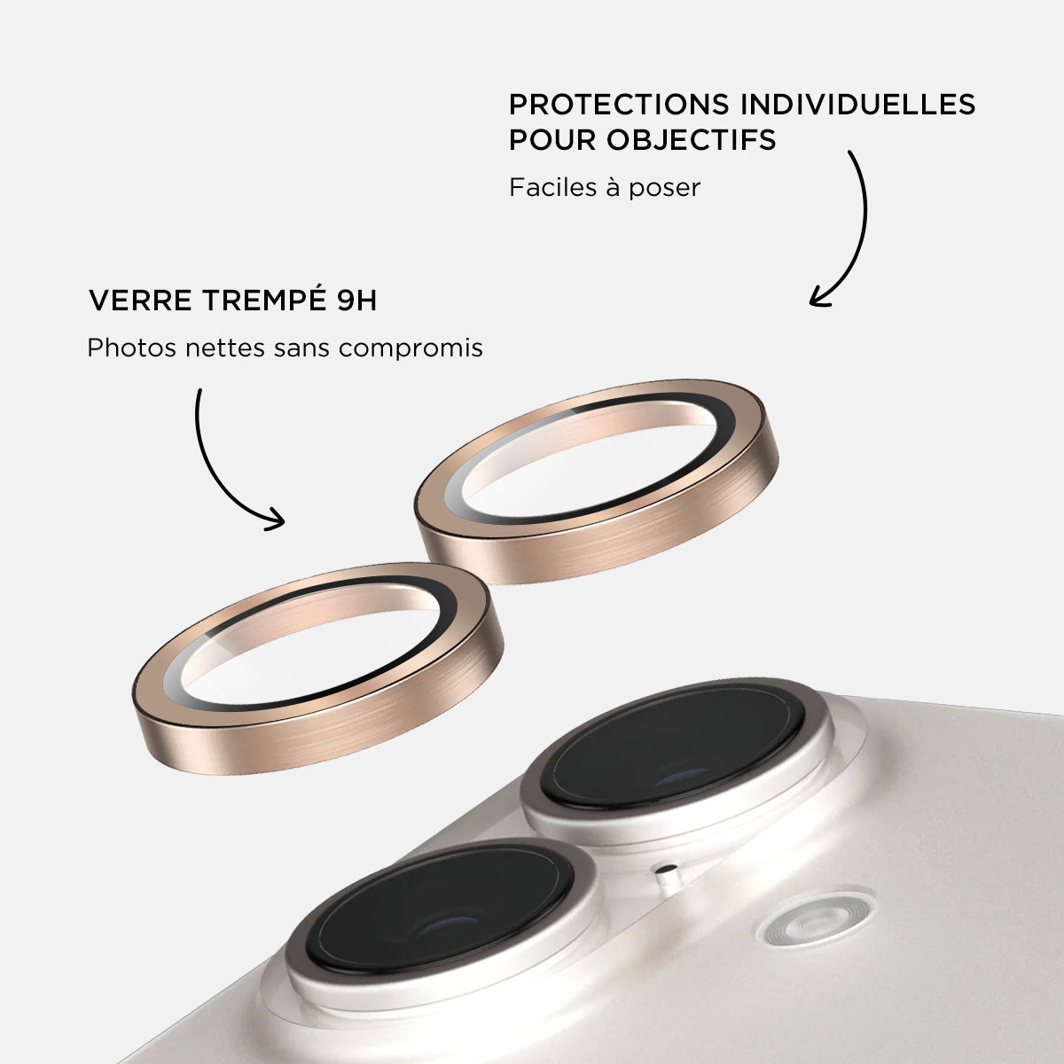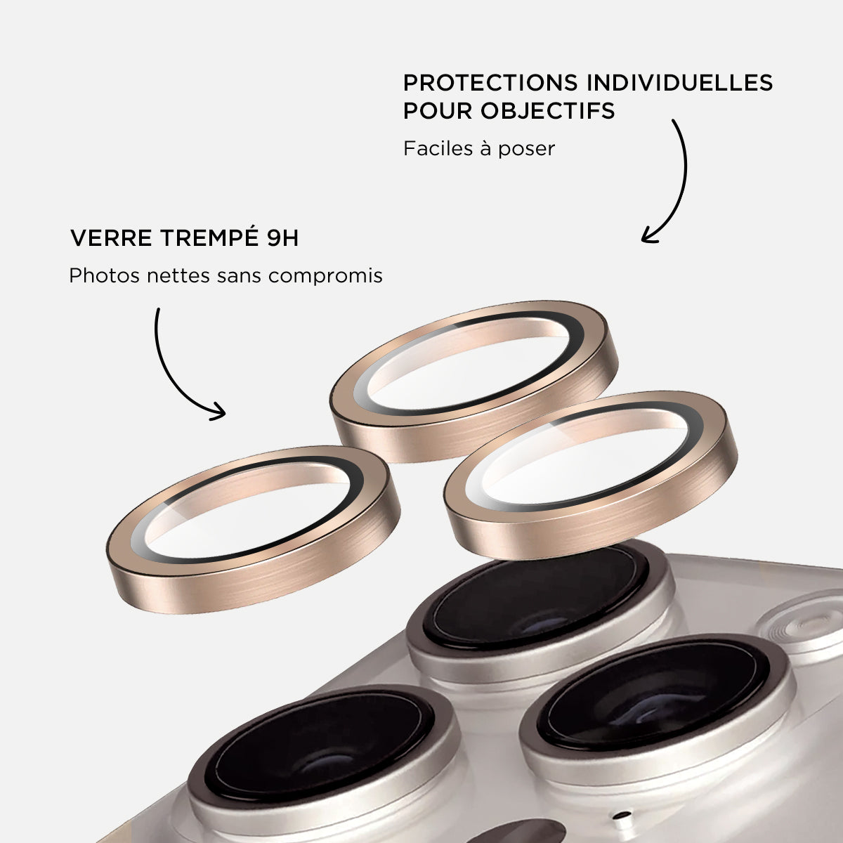 Verres caméras métalliques Or pour iPhone 16