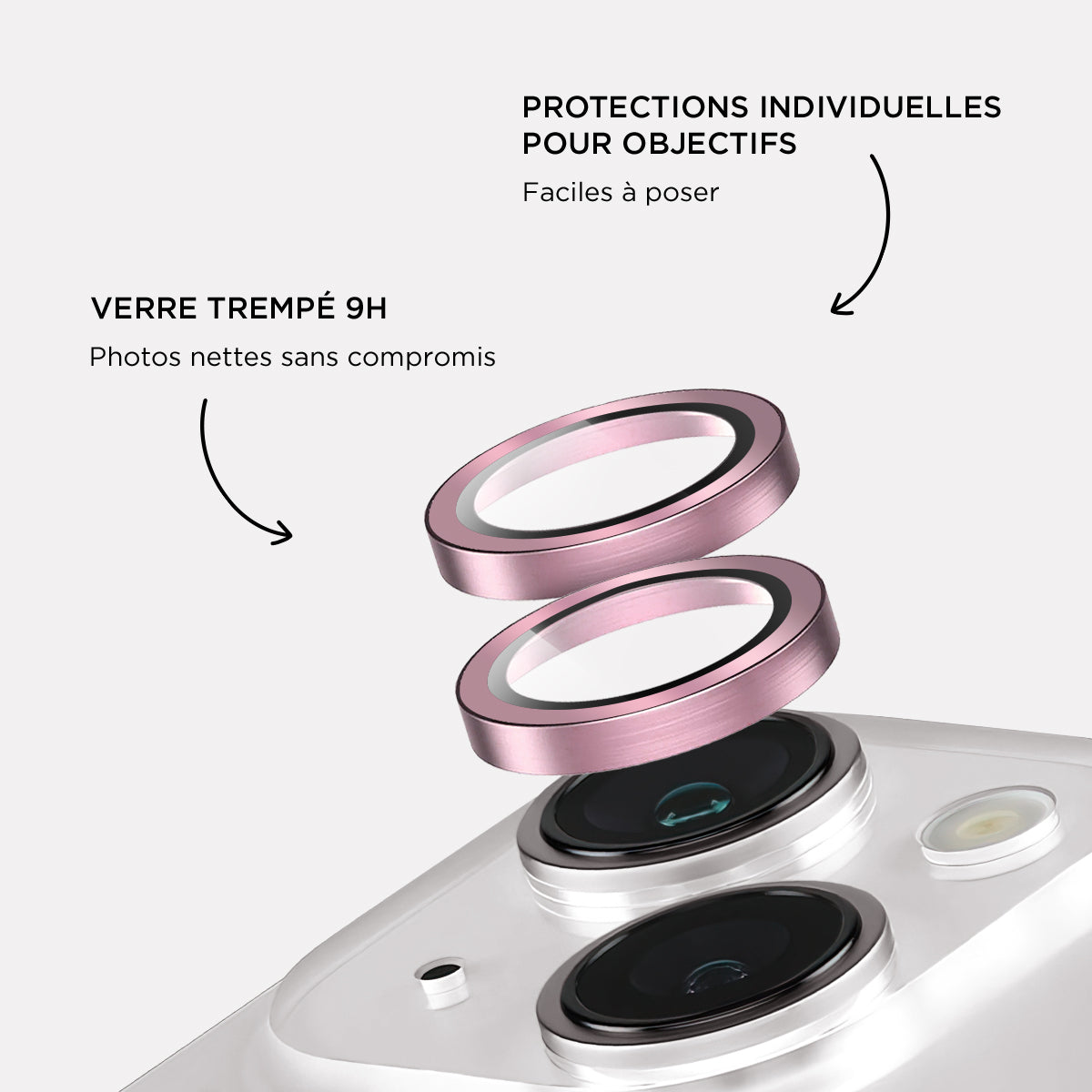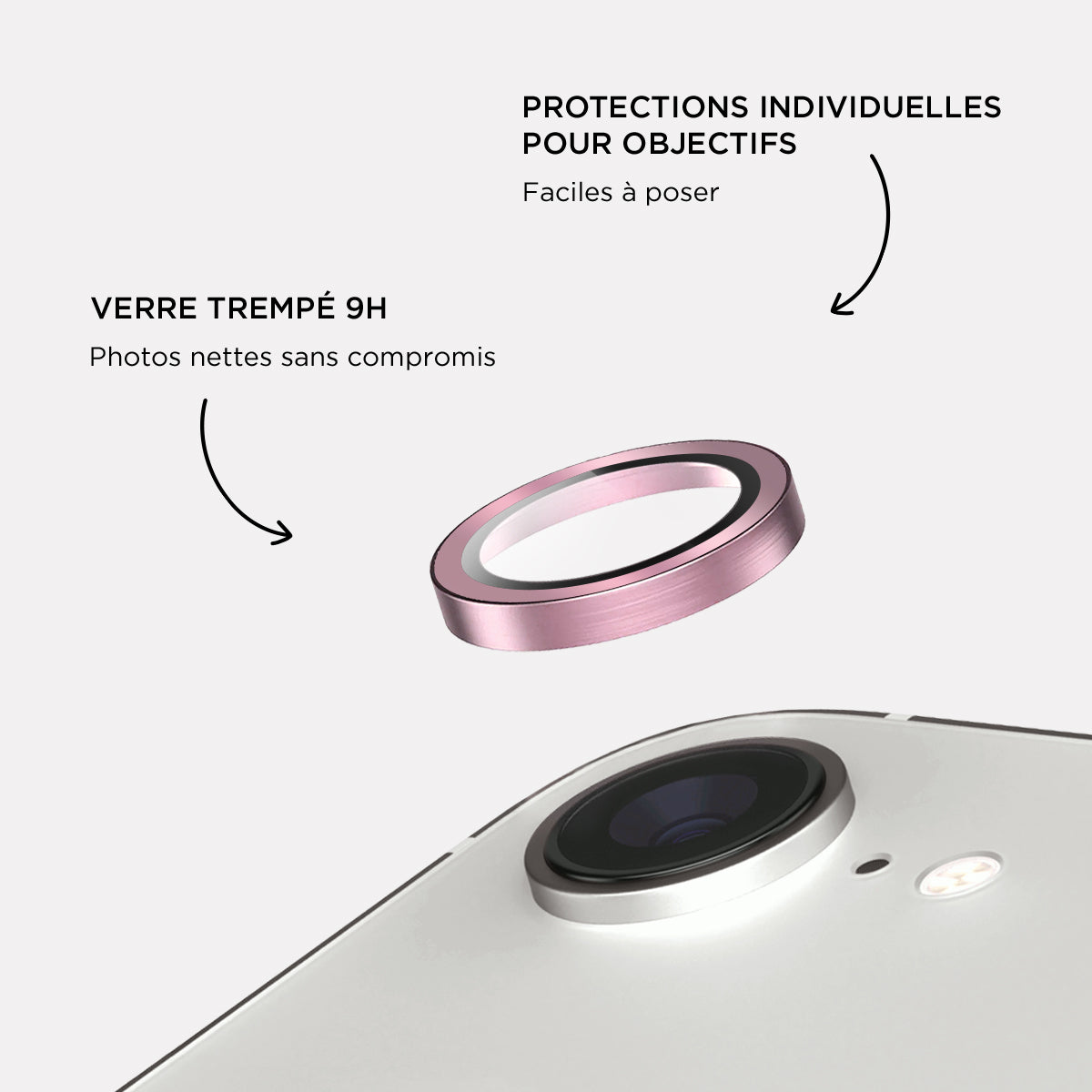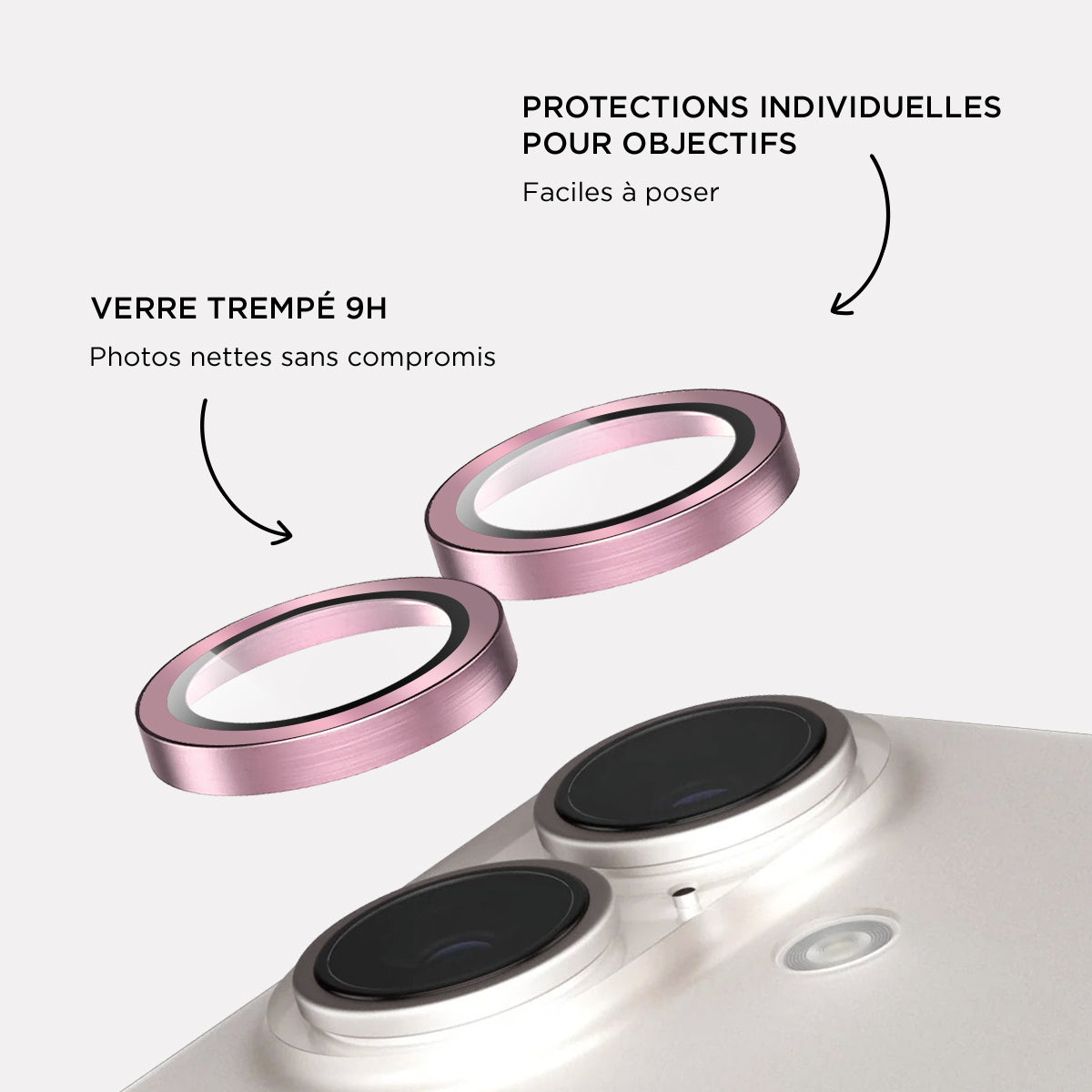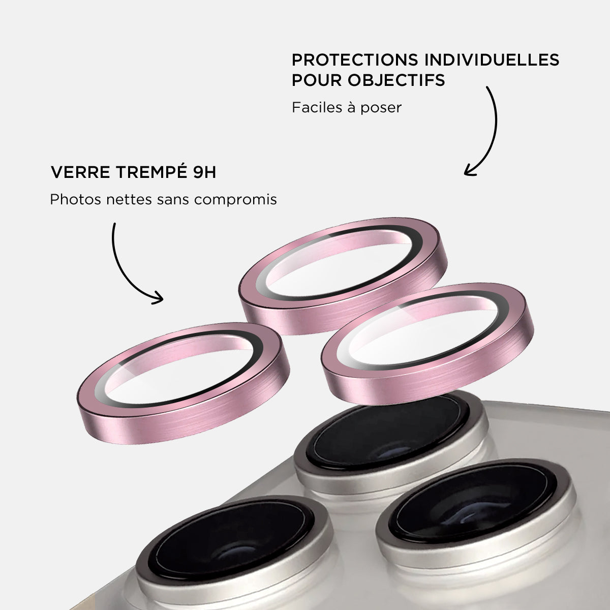 Verres caméras métalliques Rose pour iPhone 16