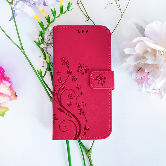 Étui Portefeuille Flower iPhone XS Max Fushia