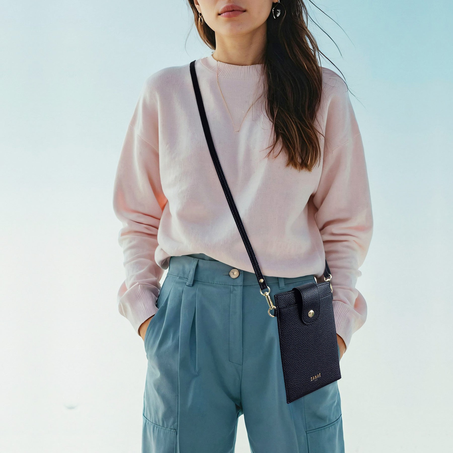 Ce sac ultra-fin est disponible en plusieurs couleurs. Il offre un emplacement téléphone, un porte-monnaie et 3 emplacements pour cartes.